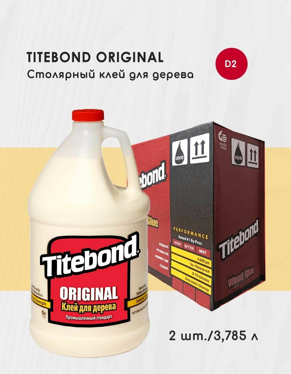 Столярный ПВА клей для дерева Titebond Original D2, 3.785 л, коробка 2 штуки