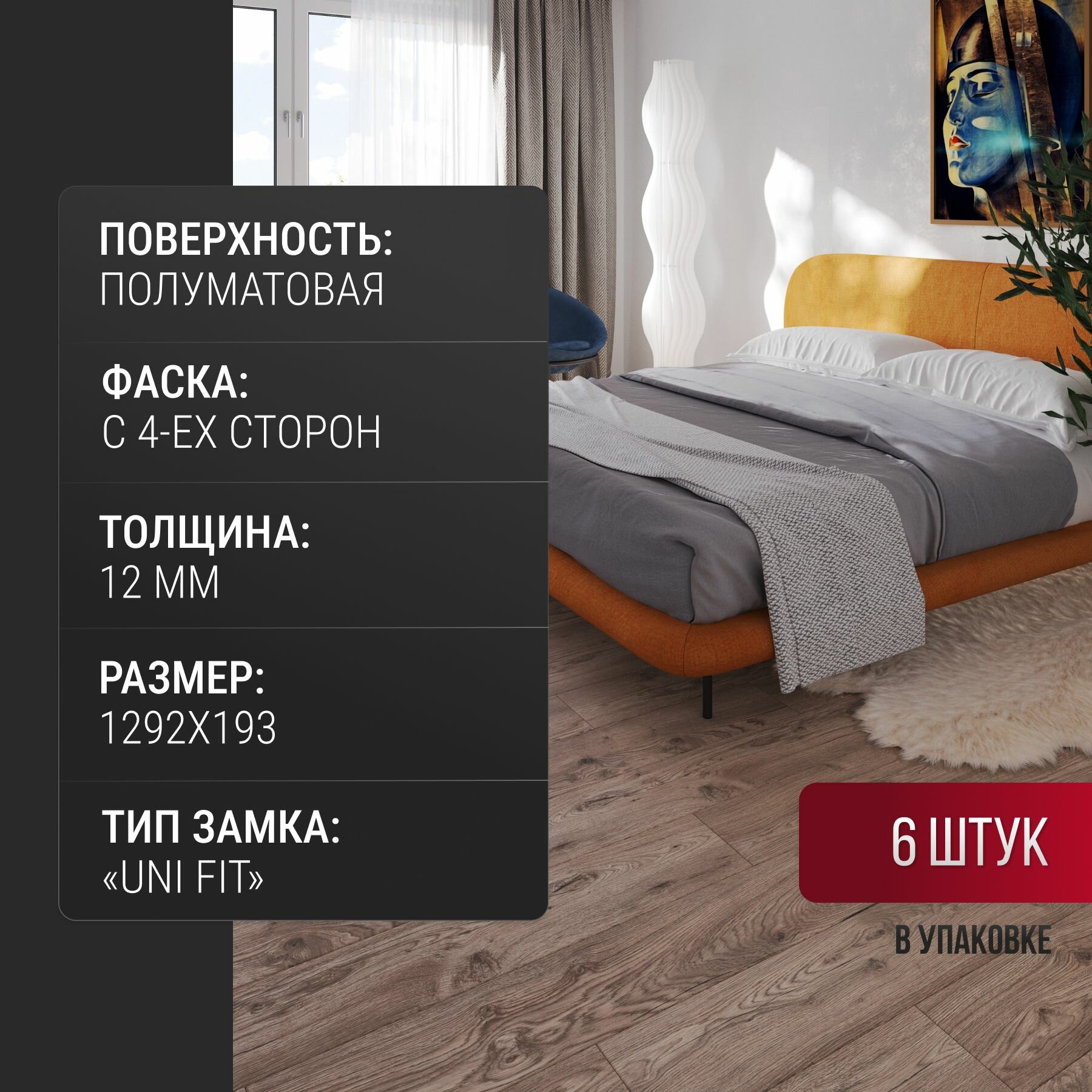 Купить Ламинат Egger 12 mm 33 Classic Дуб Ольхон Дымчатый EPL146, Коричневый, 1292 х 193 мм, 6 шт/уп, 1,496 м2/уп.