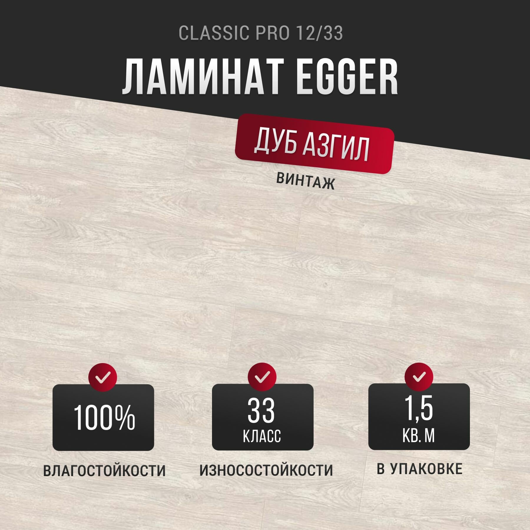 Ламинат Egger PRO Classic 2021+ 12мм EPL 188 Дуб Азгил Винтаж 4WV, класс 33 с фаской, 1 м.кв.