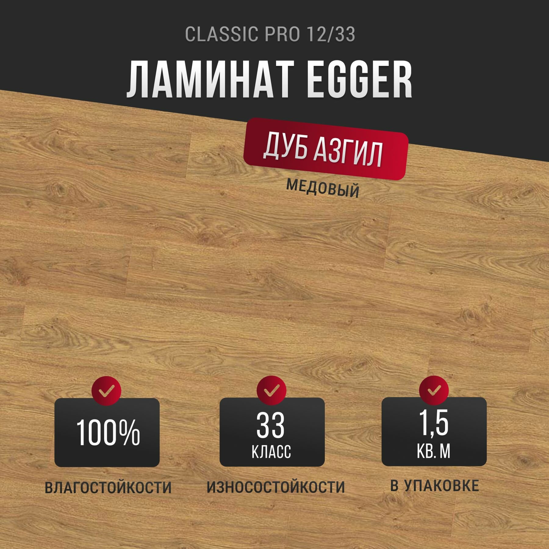 Ламинат Egger 12/33 Classic Дуб Ольхон медовый EPL144 (в уп. 6 шт./1.496 кв.м)