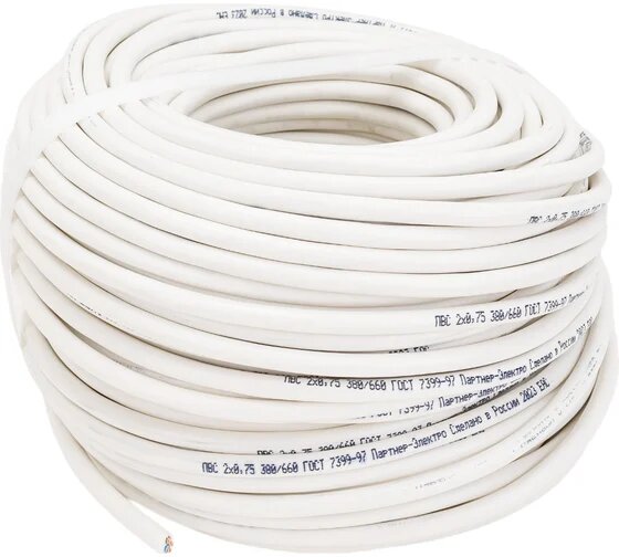 Провод бытовой ПВС 2х0.75 кв. мм партнер электро ГОСТ белый 100 м