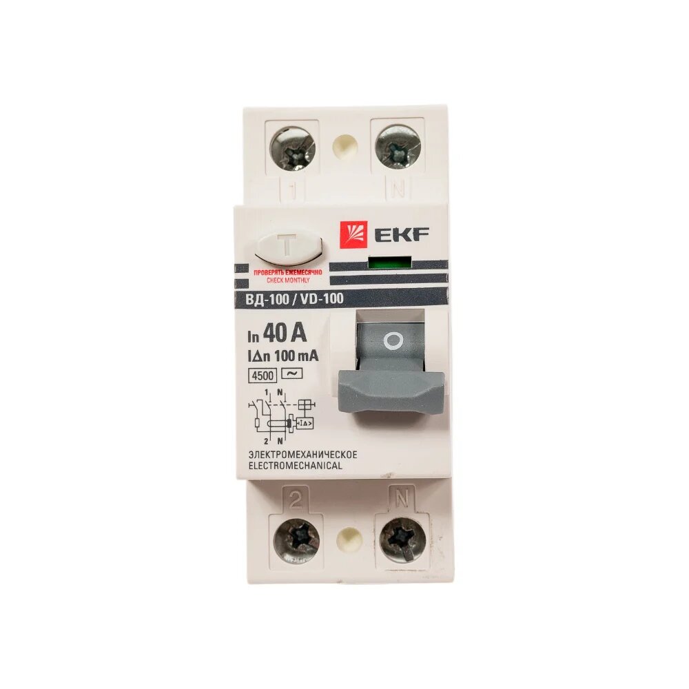 Выключатель дифференциального тока (УЗО) 2п 40А 100мА тип AC ВД-100 (электромех.) PROxima, EKF ELCB-2-40-100-EM-PRO (1 шт.)