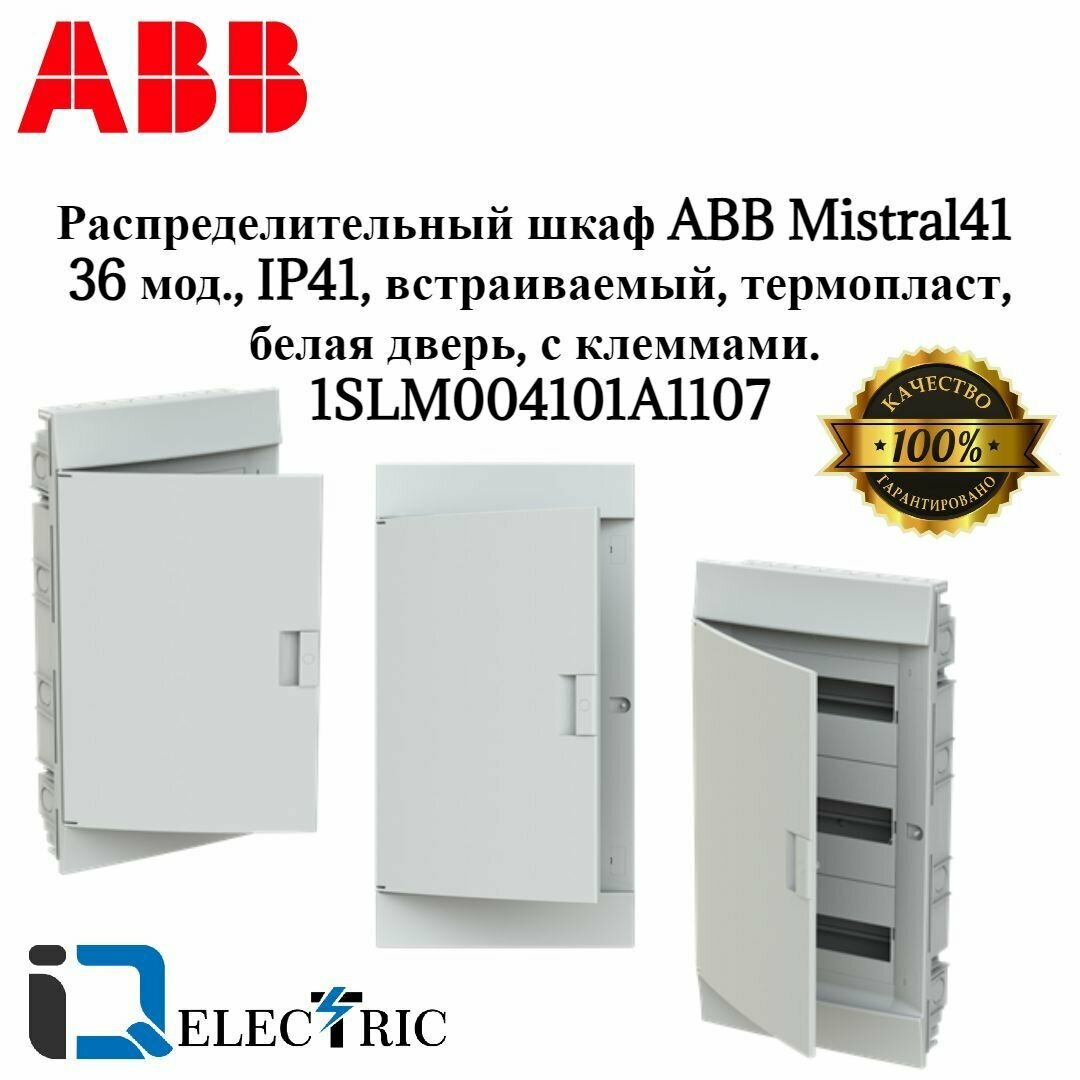 Распределительный шкаф ABB Mistral41 48 мод., IP41, встраиваемый, термопласт, белая дверь, с клеммами 1SLM004101A1108