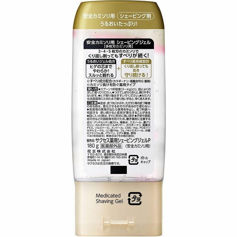 KAO Увлажняющий гель "Success" для бритья Гладкое скольжение для бритв с двойным лезвием (без ментола) 180 г