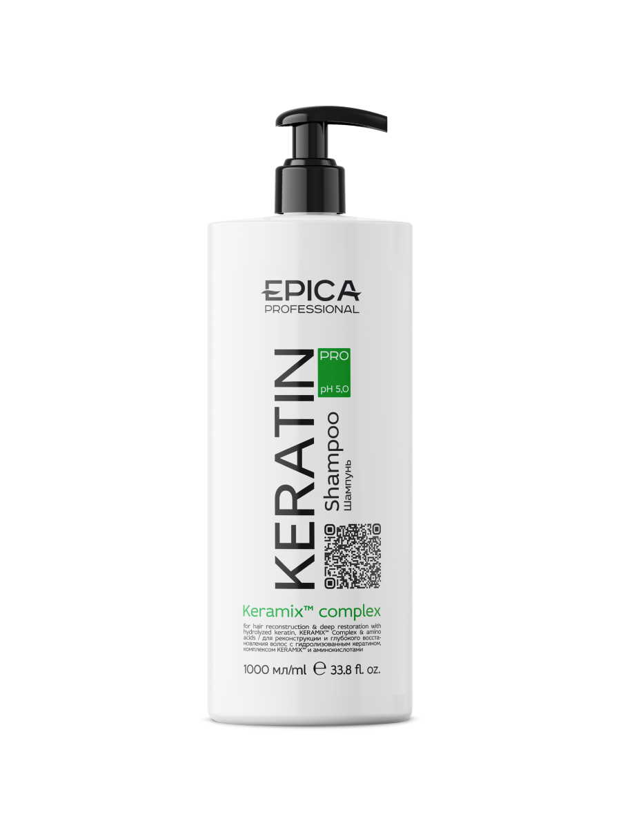 EPICA PROFESSIONAL Keratin Pro Шампунь для реконструкции и глубокого восстановления волос, с гидролизованным кератином и аминокислотами, 1000 мл