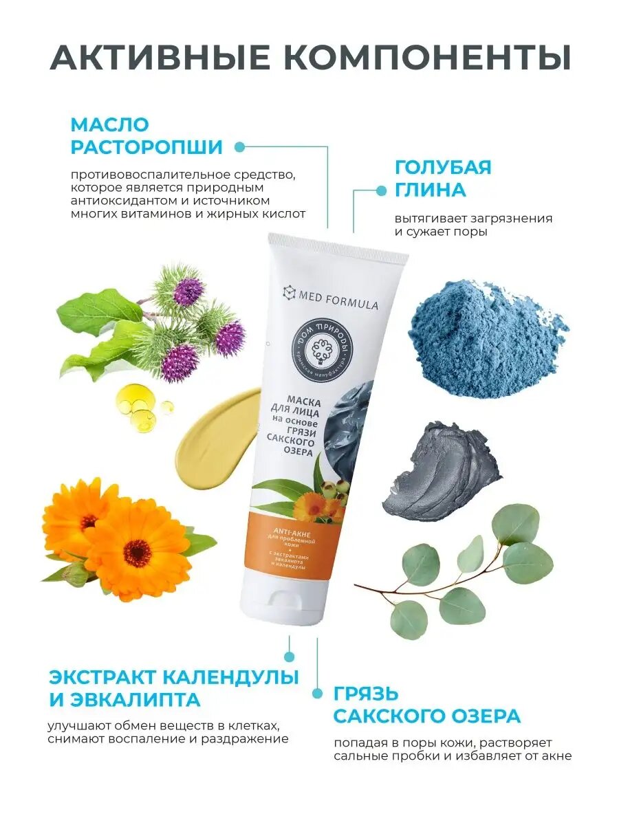 Дом Природы Маска для лица на основе грязи Сакского озера Anti-акне в тубе