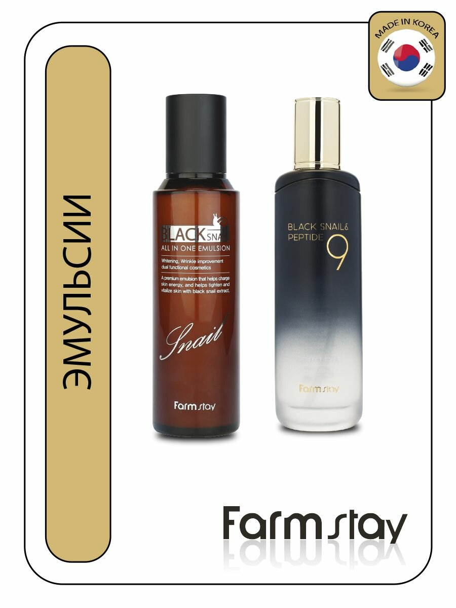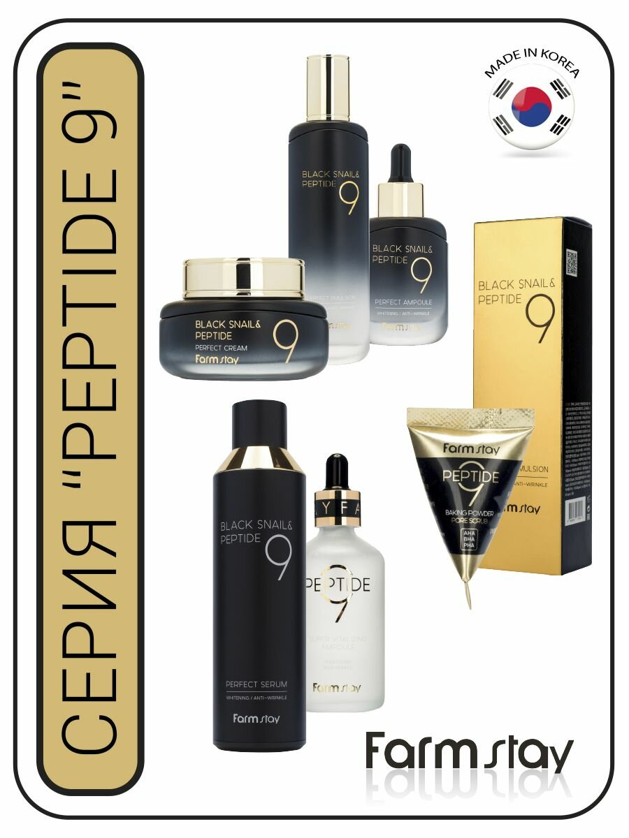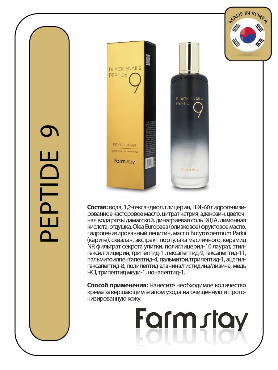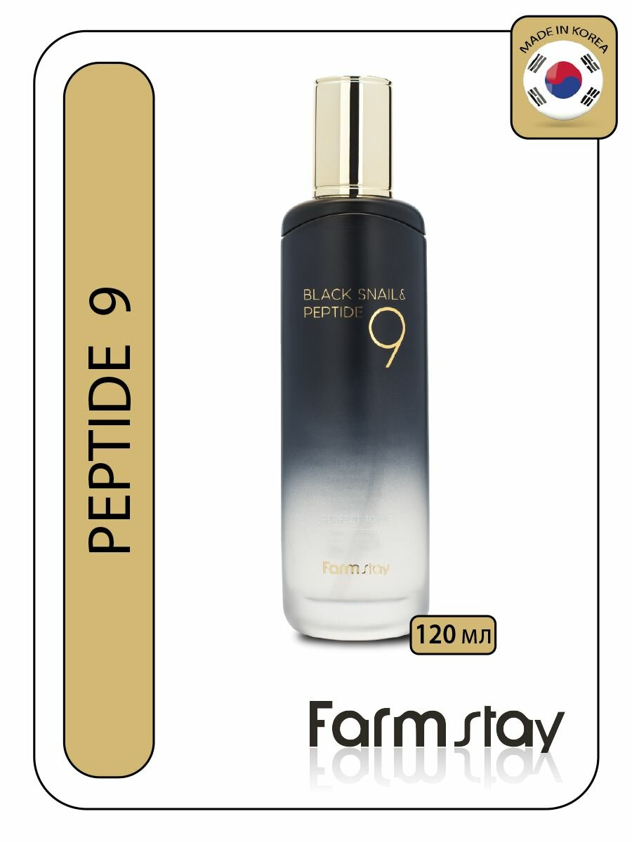 Тонер с черной улиткой и пептидами – FarmStay Black Snail & Peptide 9 Perfect Toner 120ml