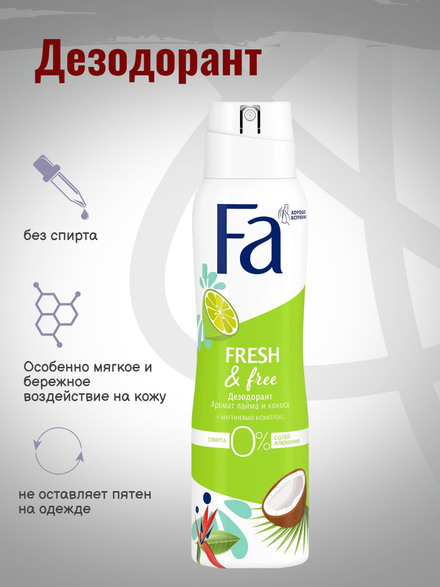 Fa Дезодорант Fresh&Free аромат лайма и кокоса, спрей, 150 мл, 140 г, 150 шт.