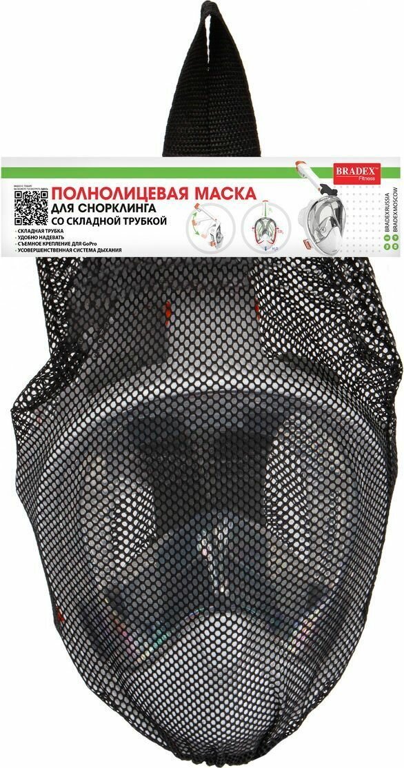 Маска Bradex полнолицевая для снорклинга со складной трубкой, S