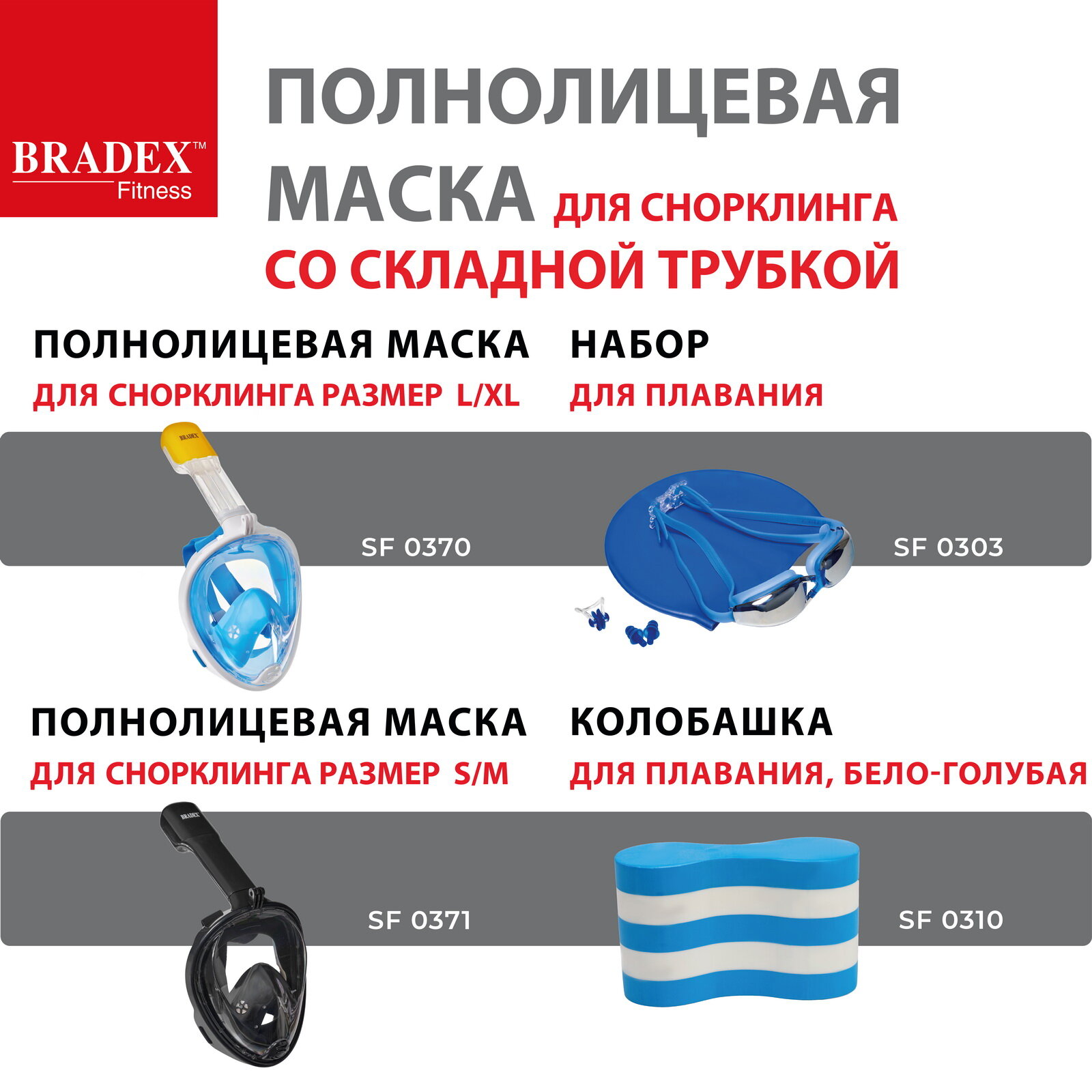 BRADEX Полнолицевая маска для снорклинга со складной трубкой, L SF 0550