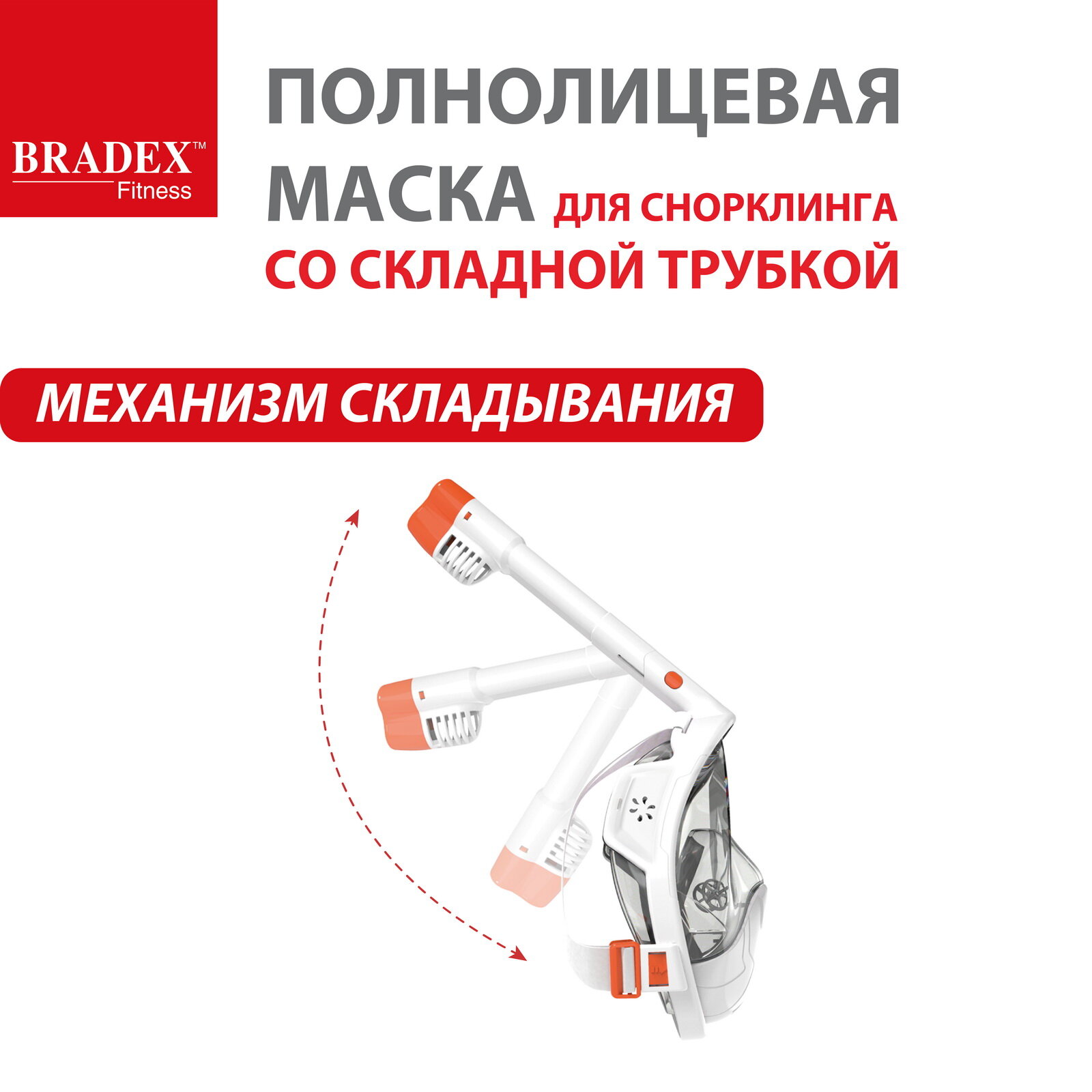 Полнолицевая маска для снорклинга со складной трубкой Bradex , L .
