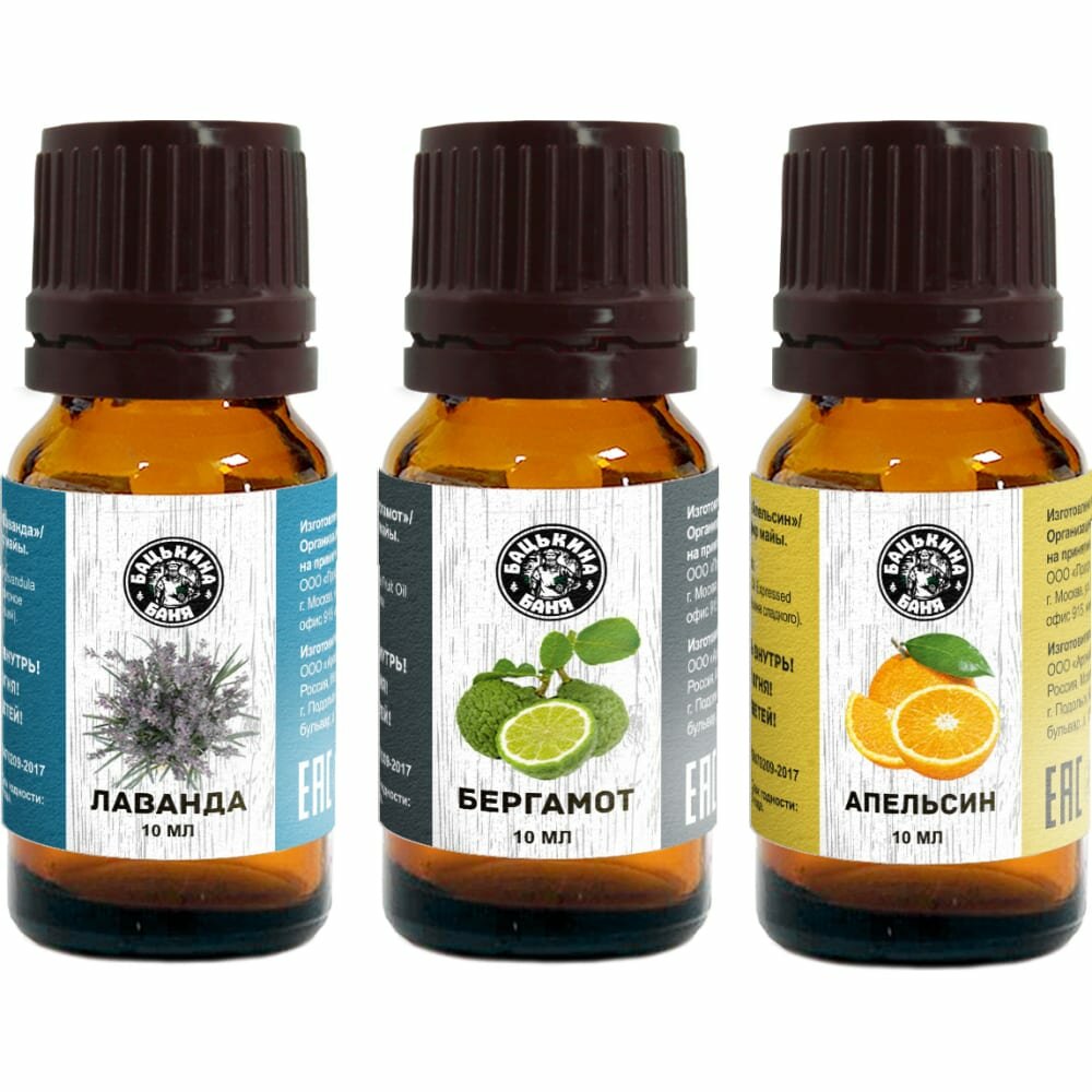Эфирные масла натуральные для бани и сауны набор Бергамот 3шт. Бацькина баня ароматизатор для дома, арома масла