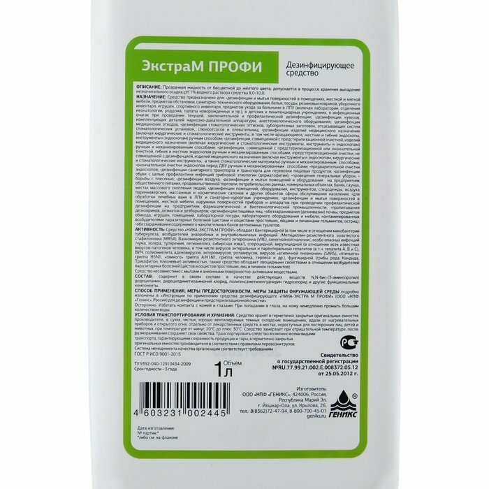 Дезинфицирующее средство Ника "Экстра М Профи", 1л Геникс
