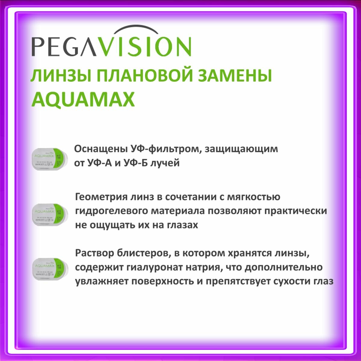 Двухнедельные контактные линзы Pegavision Aquamax 6 pk (BC 8.6; D -3.00)