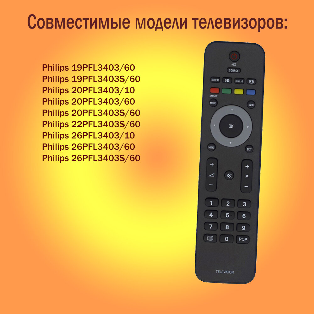 Пульт ДУ Huayu RC-242254901911 для телевизоров Philips 19PFL3403-60/20PFL3403-60/ 20PFL3403-10/26PFL3403-10, черный