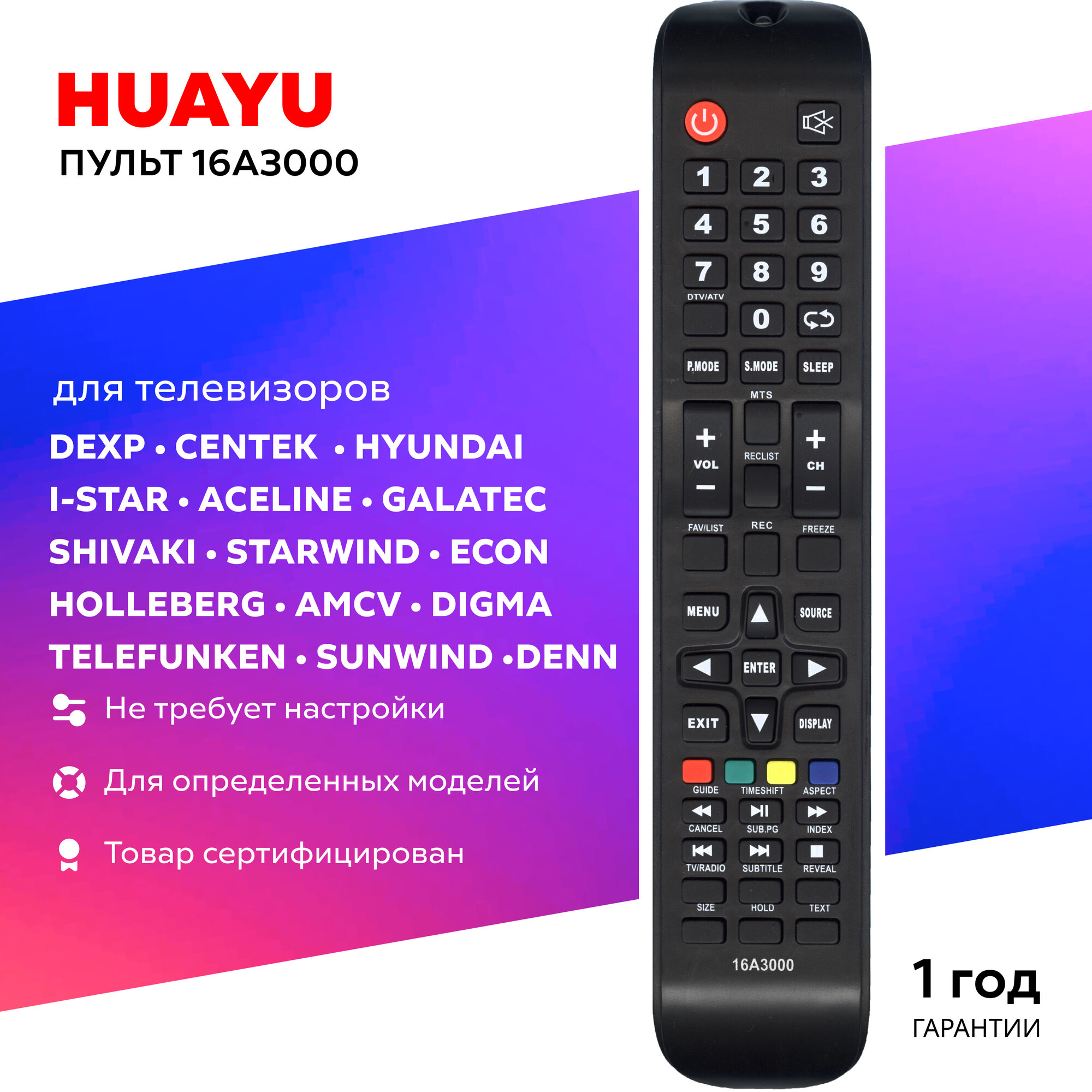 Пульт ДУ Huayu для DEXP 16A3000