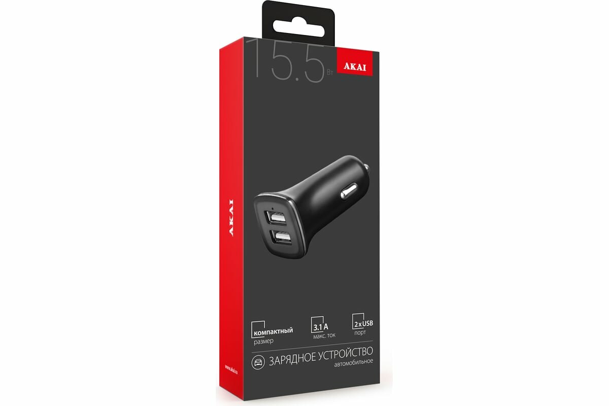 Универсальное автомобильное зарядное устройство AKAI 2хUSB, 3.1 A, черный CH-6D02B