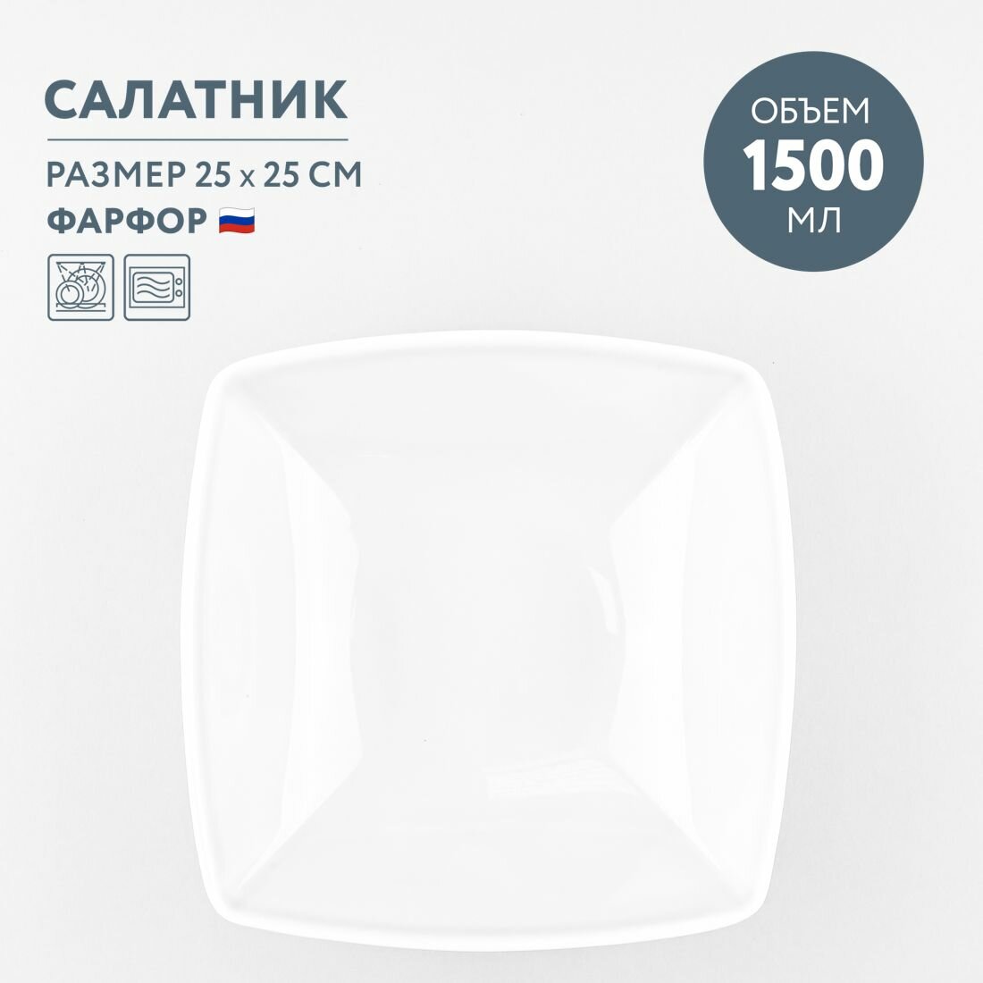 Салатник фарфоровый квадратный 1500 мл Башкирский фарфор Белый интересное:
