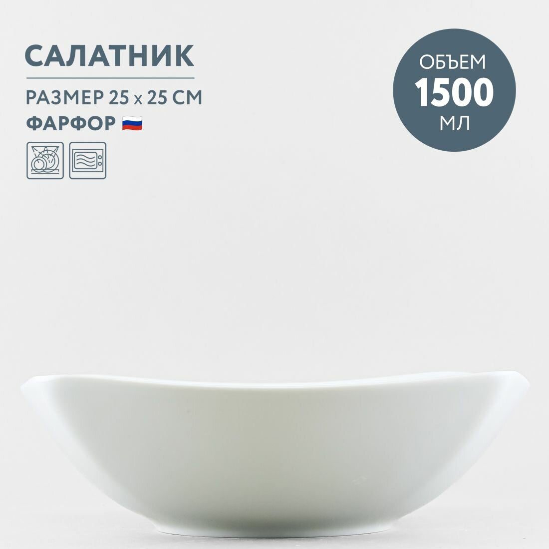 Купить Салатник фарфоровый квадратный 1500 мл Башкирский фарфор Белый