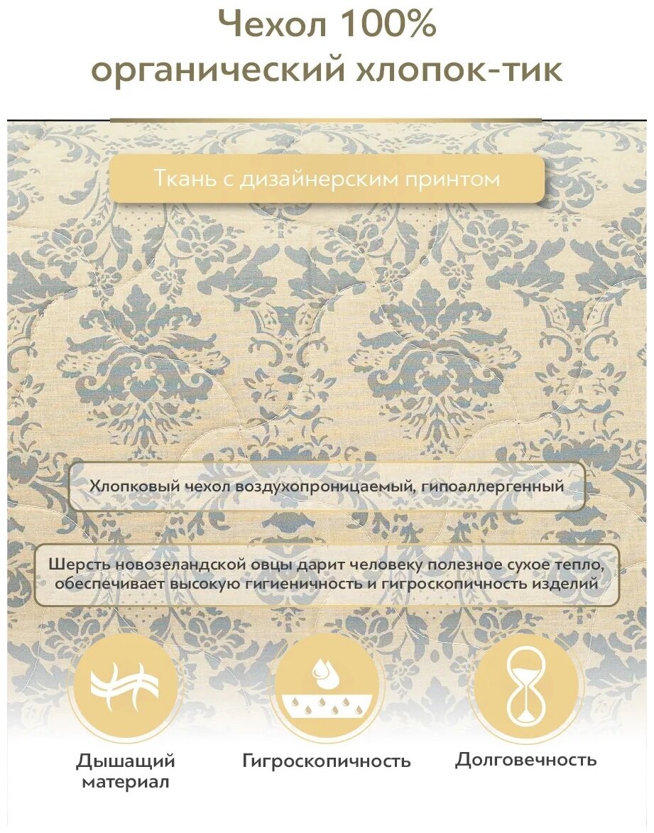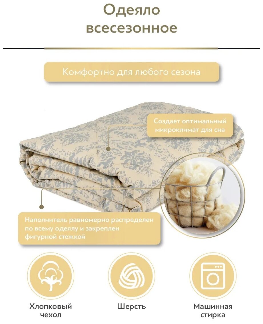 CLASSIC by T Одеяло всесезонное Роял Найт, овечья шерсть, цвет: бежевый (175х200 см)