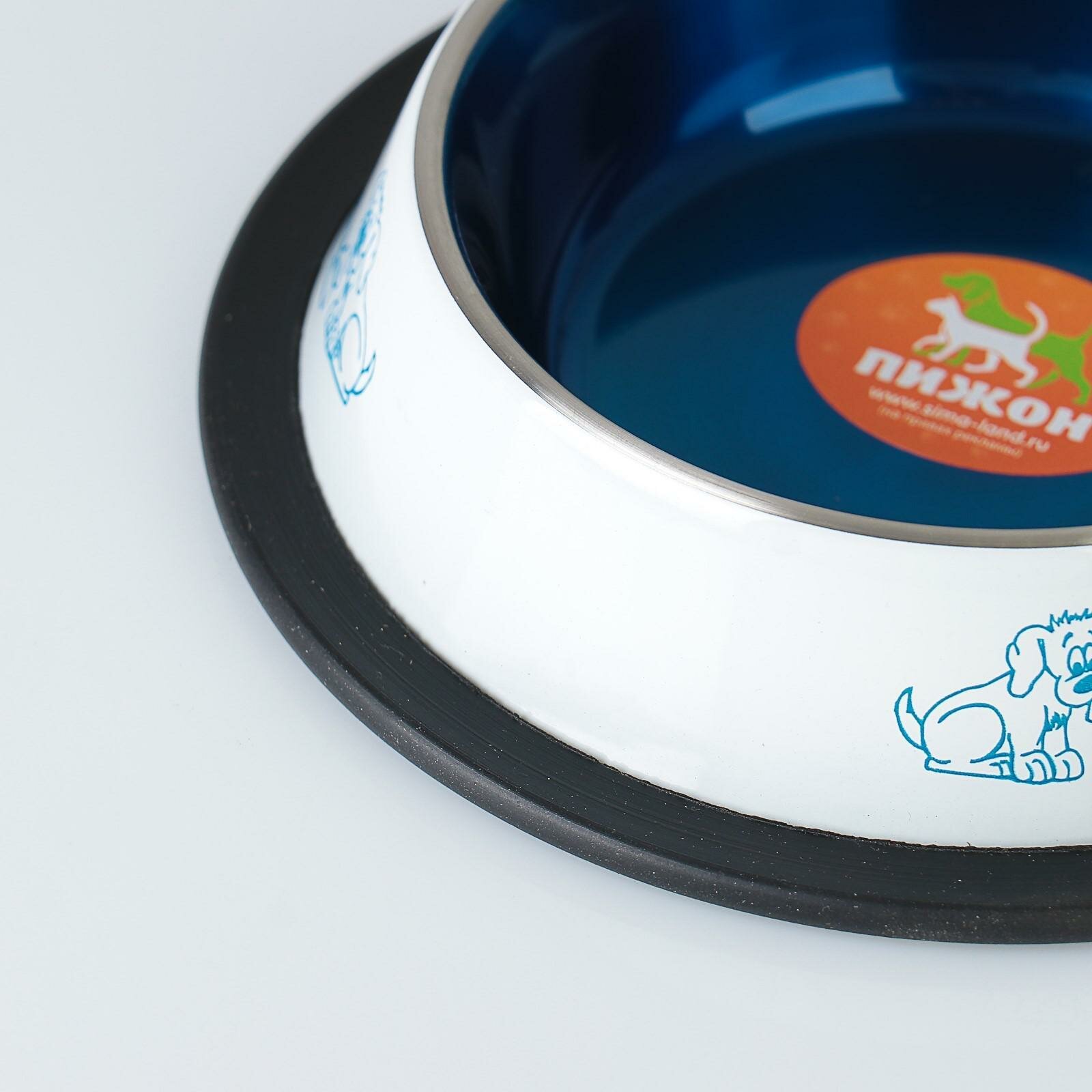 Миска для собак Пижон, с нескользящим основанием, бело-синяя, 230 мл