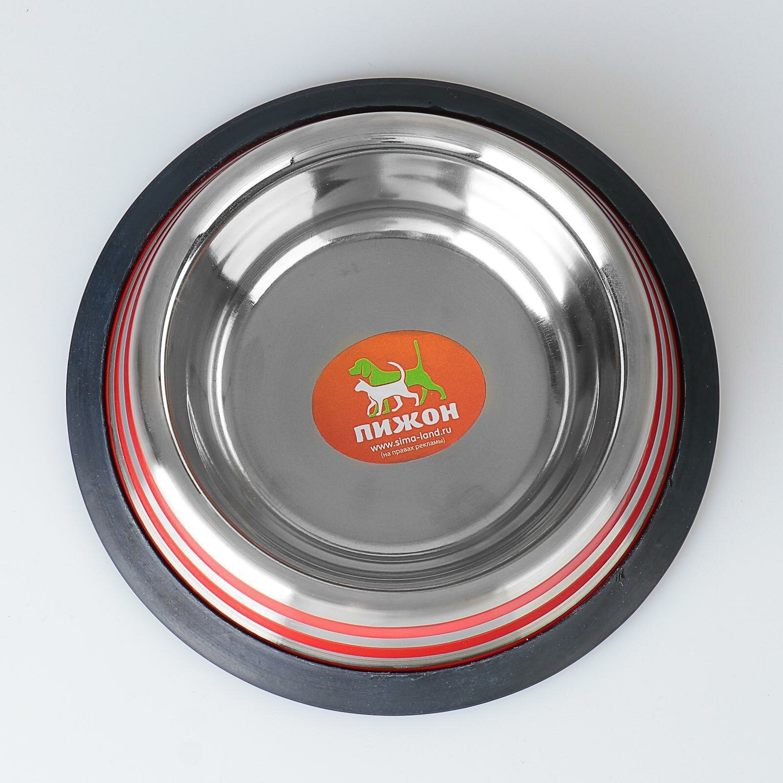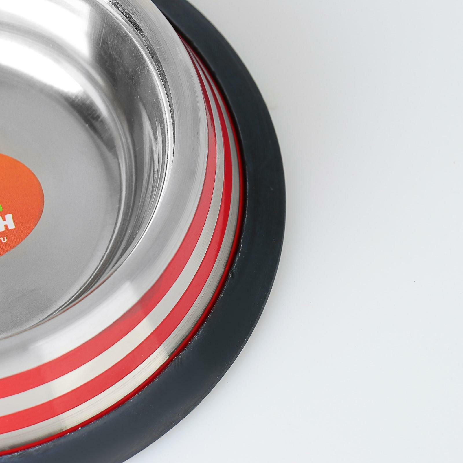 Миска с нескользящим основанием с цветными полосками, 230 мл, красная, "Пижон", цвет красный, материал металл