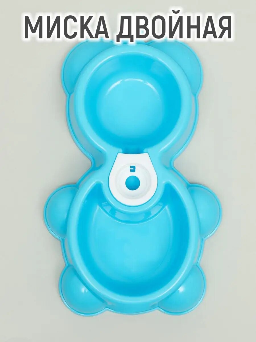 Купить Миска для животных Пижон Мишка двойная под бутылку, голубая