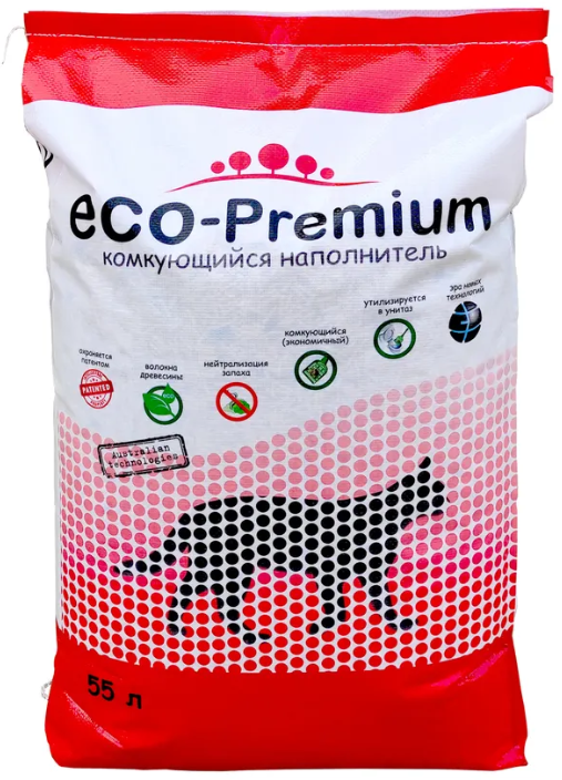 Наполнитель ECO-PREMIUM Blue комкующийся древесный (55 л)