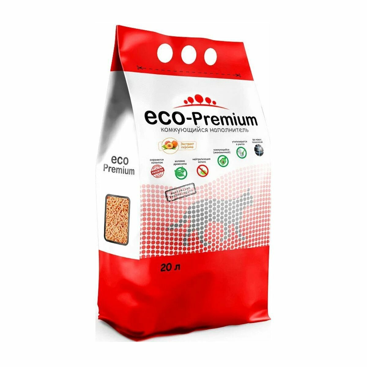 Наполнитель Эко Премиум для кошачьего туалета Древесный Комкующийся с ароматом Персика 20 л (7,6 кг)