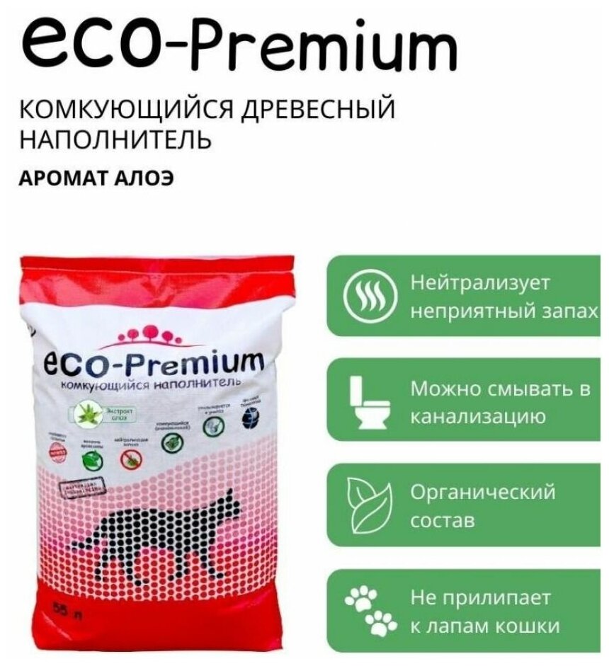 Наполнитель для кошачьего туалета комкующийся древесный ECO Premium Алоэ 20.2кг/55л