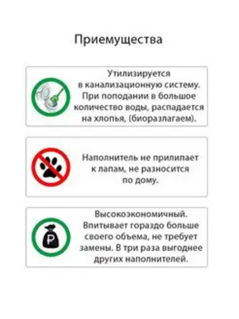 | Плюсы: | Отлично впитывает, нет запаха, можно смывать в унитаз! |