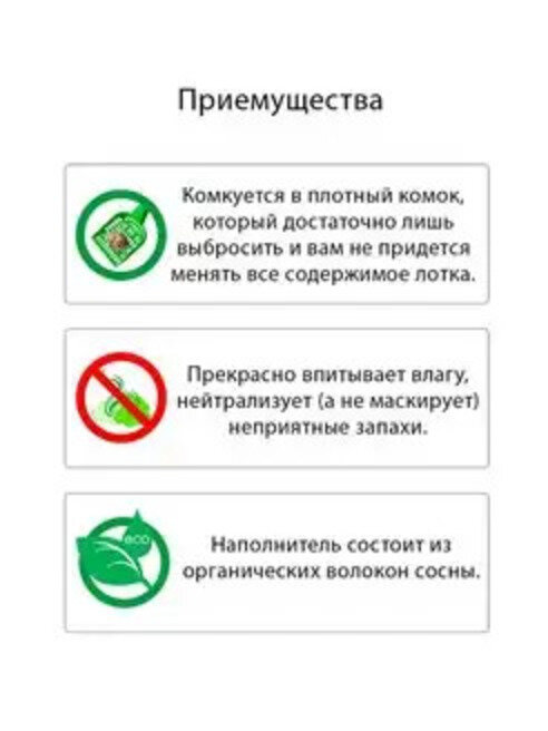 | Минусы: | Не впитывает жидкость, не держит запах, крошится в труху. |