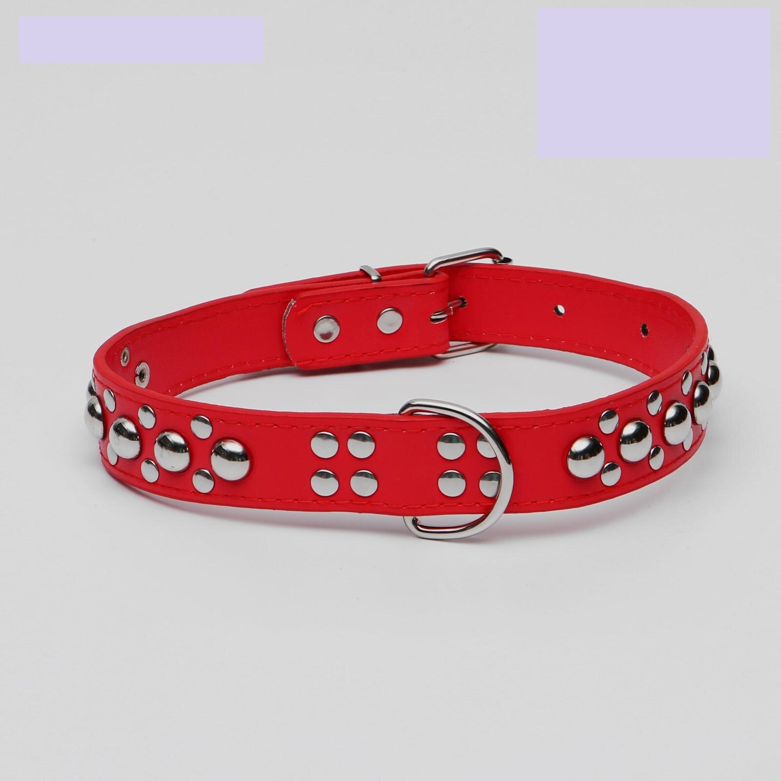 Ошейник "Сириус", кожзам с заклёпками, 56 х 3 см, ОШ 42-52, красный
