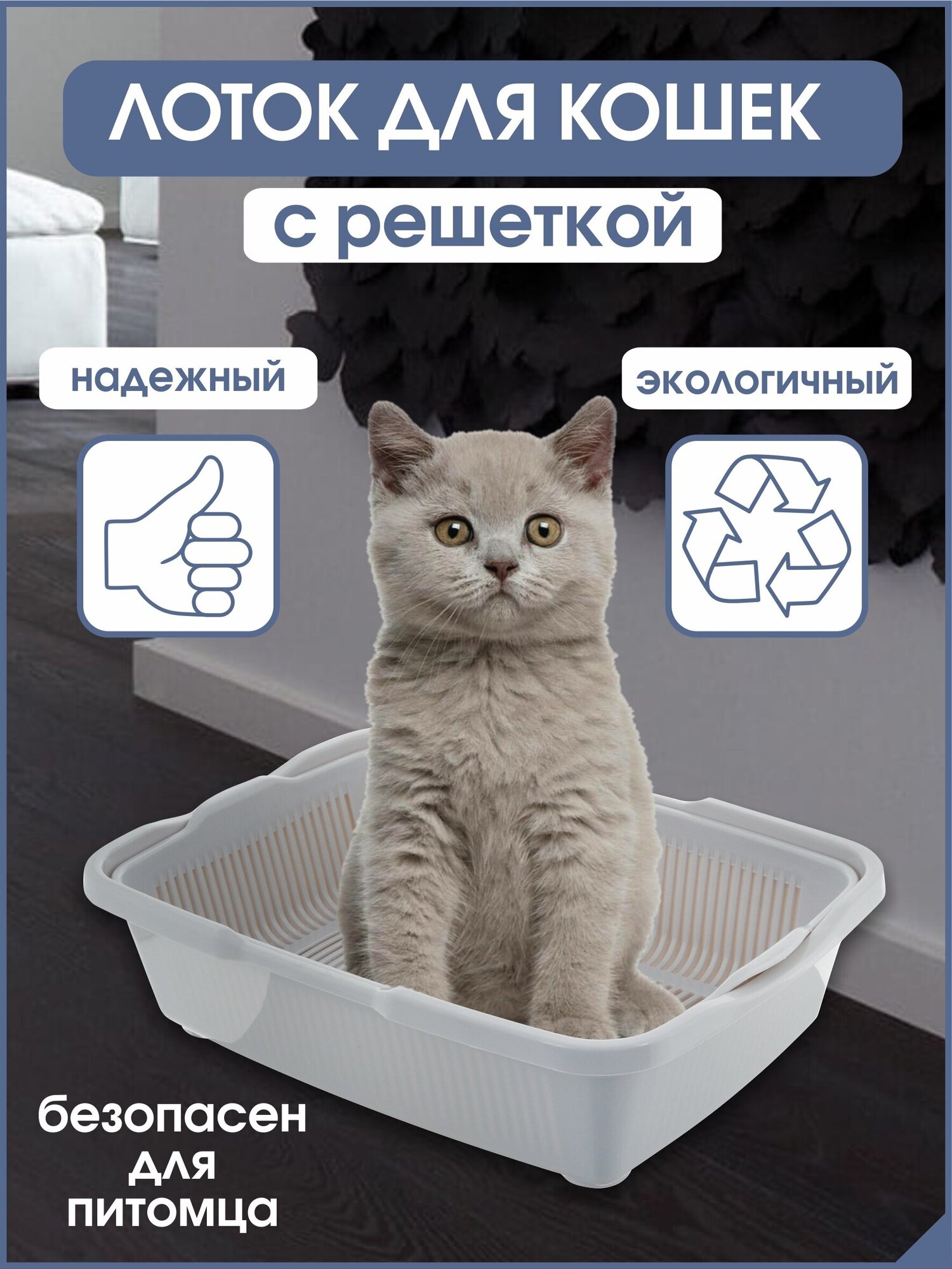 | Плюсы: | Приятный цвет, качественный пластик, есть решетка. В реальности он достаточно большой и глубокий, при заказе не смотрела габариты. Но котёнок полюбил его сразу, удобно - что наполнитель никогда не попадает на пол даже при супер активном закапывании котейки |