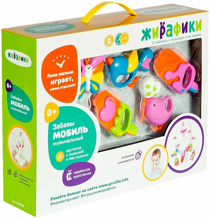Ниже Вы можете прочитать отзывы на Мобиль на кроватку для новорожденных Жирафики "Забавы" вращение игрушек, ознакомится с подробными характеристиками, посмотреть интересные обзоры и фотографии на Мобиль на кроватку для новорожденных Жирафики "Забавы" вращение игрушек.