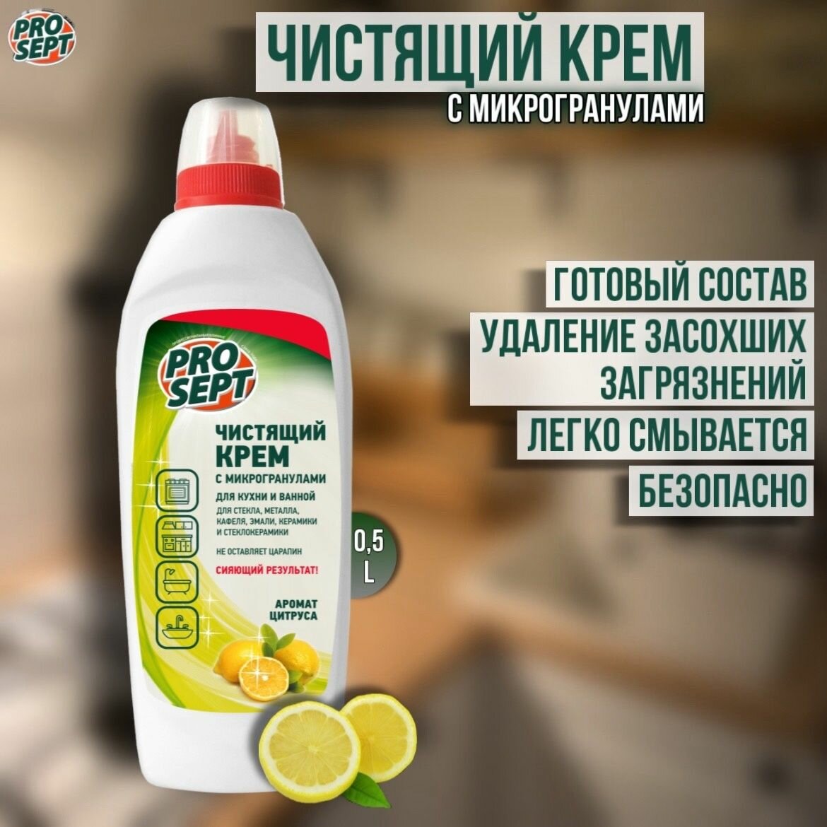 Чистящий крем для кухни Prosept Cooky Universal, с ароматом цитруса, 0,5 л