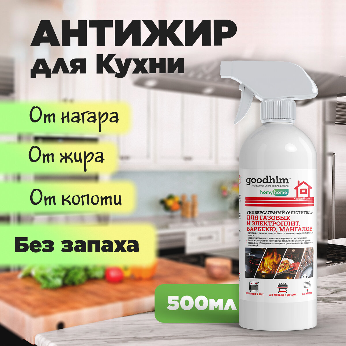 Купить Очиститель жира, нагара и копоти GOODHIM антижир, спрей 0,5 л