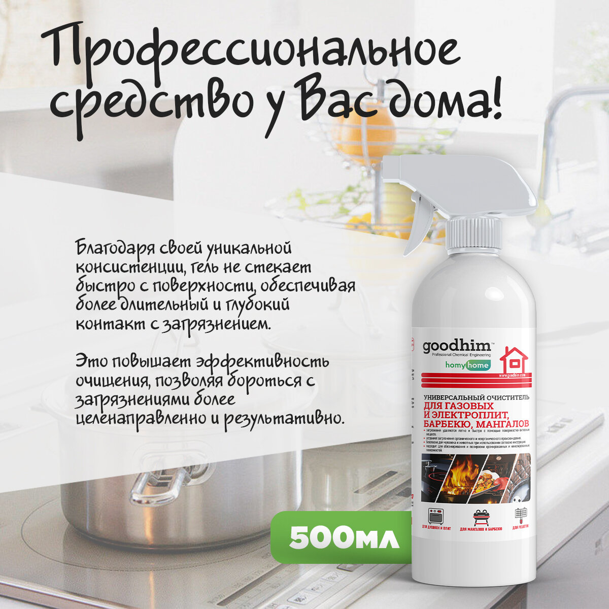 Очиститель для газовых и электроплит, мангалов и барбекю"Универсальный очиститель GOODHIM", 0,5л*