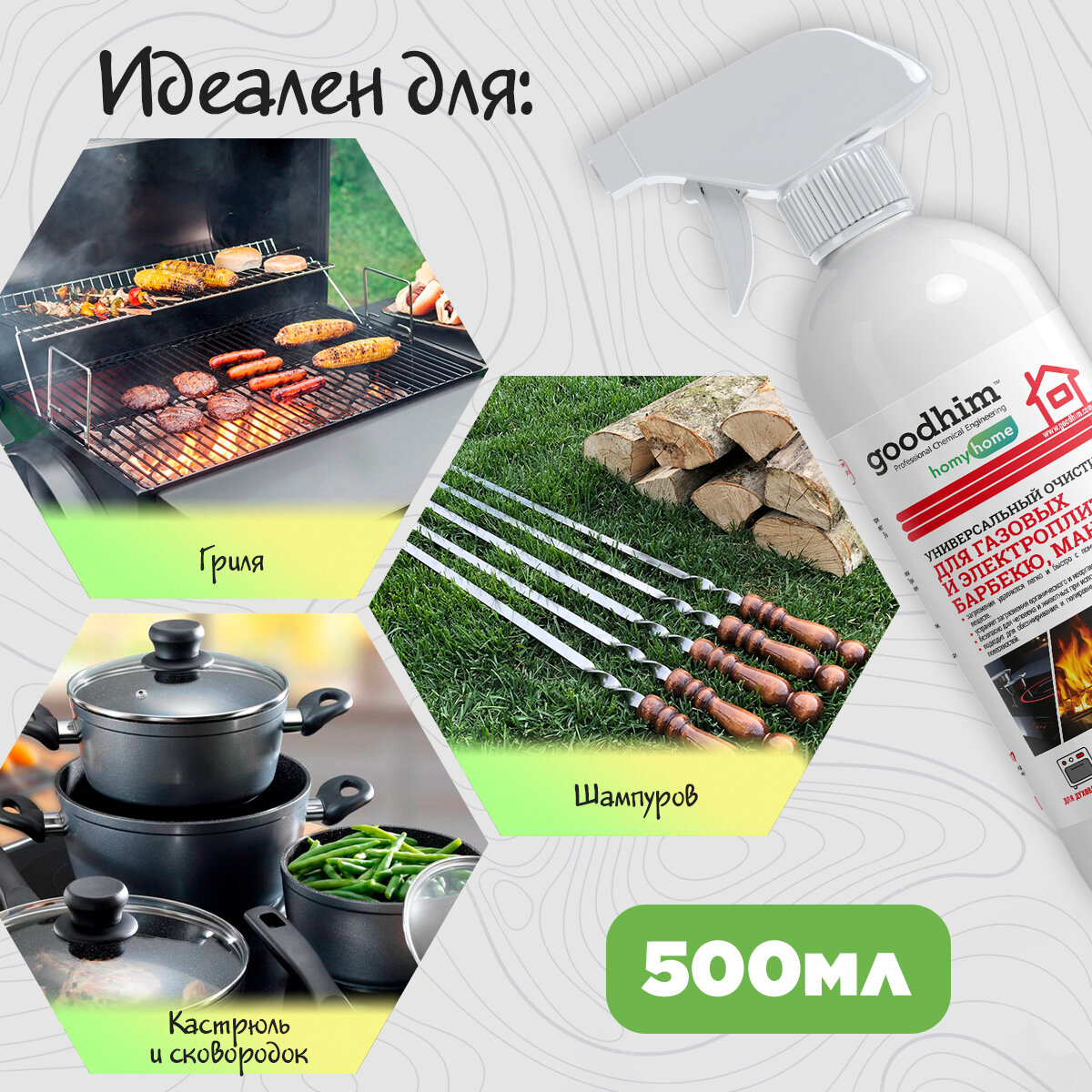 Универсальный очиститель для барбекю, мангалов Goodhim готовый раствор, 0.5л 43292
