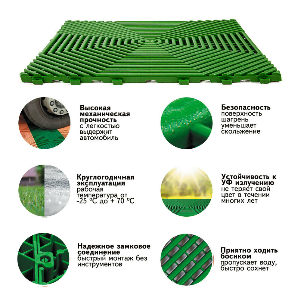 Садовое напольное покрытие HELEX (упаковка 1 м², размер 40×40 см, зелёное)