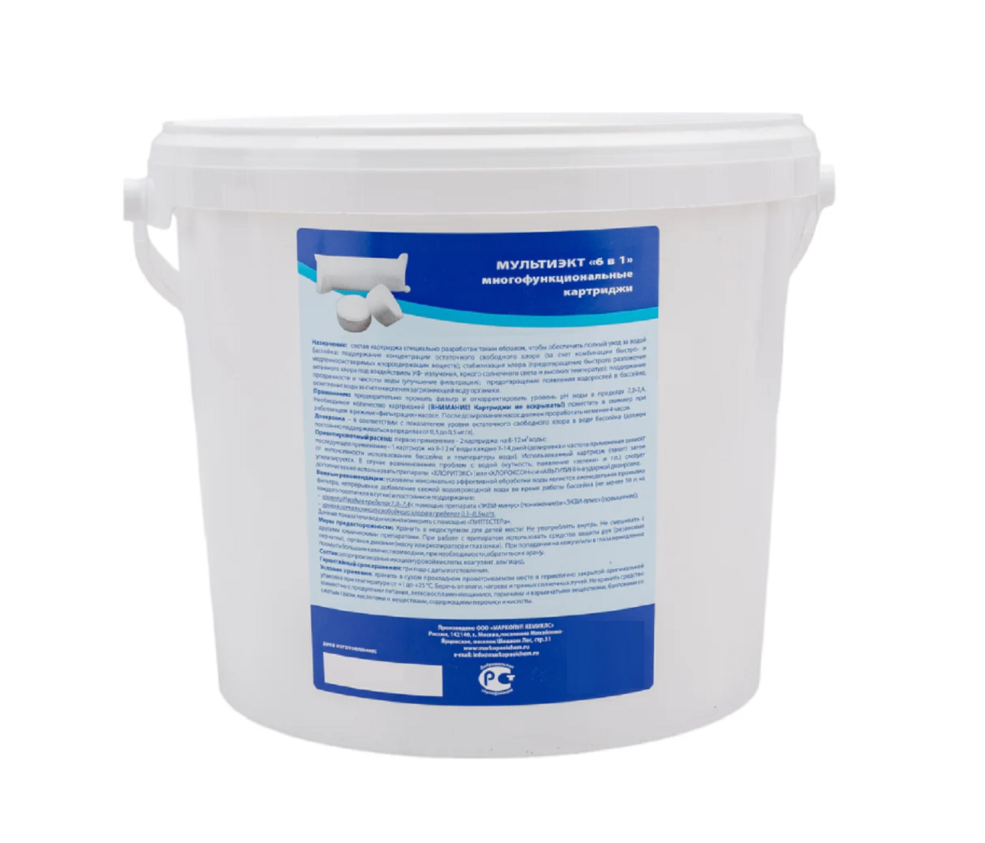 Мультиэкт 6в1, 4 кг., таблетки в картриджах, медленно растворимый хлор, химия для бассейнов