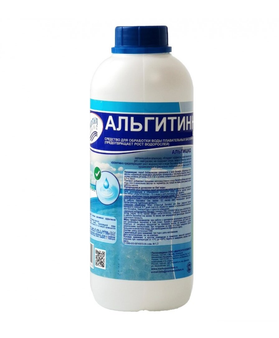 Химия для бассейна - Альгицид: "Альгитинн" (1 литр) Жидкость против водорослей, Дезинфекция и очистка воды без хлора / Средство для ухода за водой "Маркопул Кемиклс"