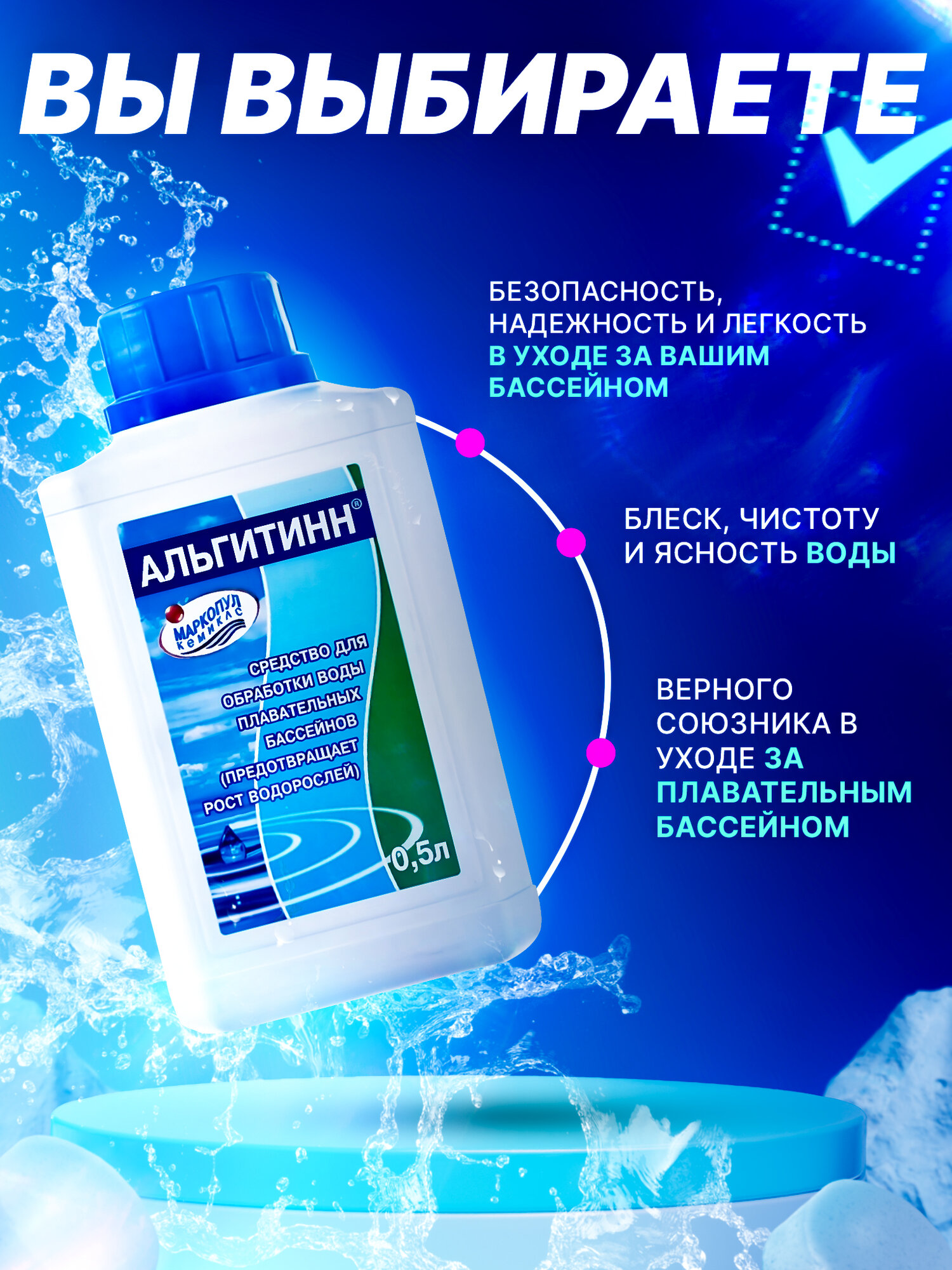 Альгитинн для бассейна (3 л): Альгицид, средство против цветения воды в бассейне. Маркопул Кемиклс.