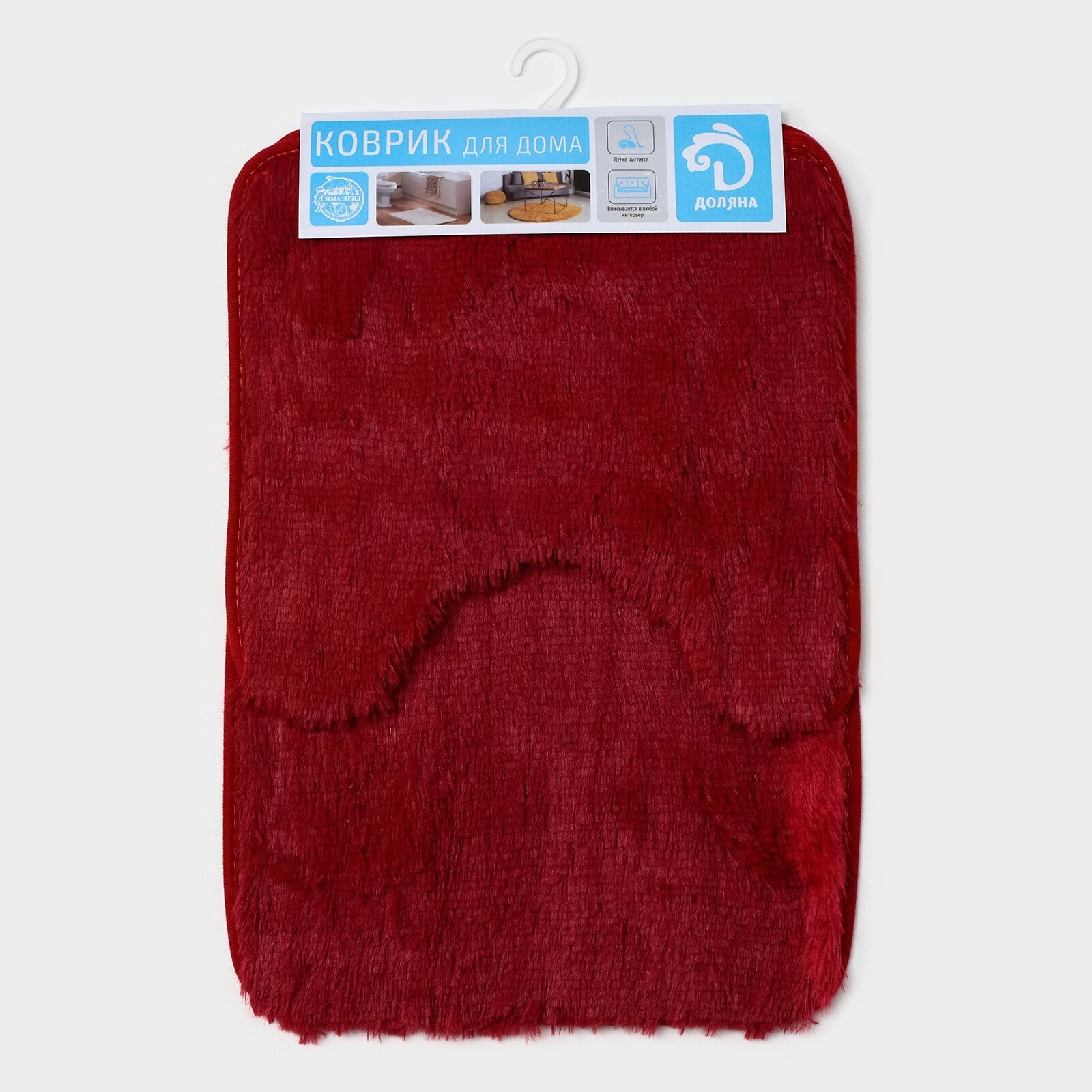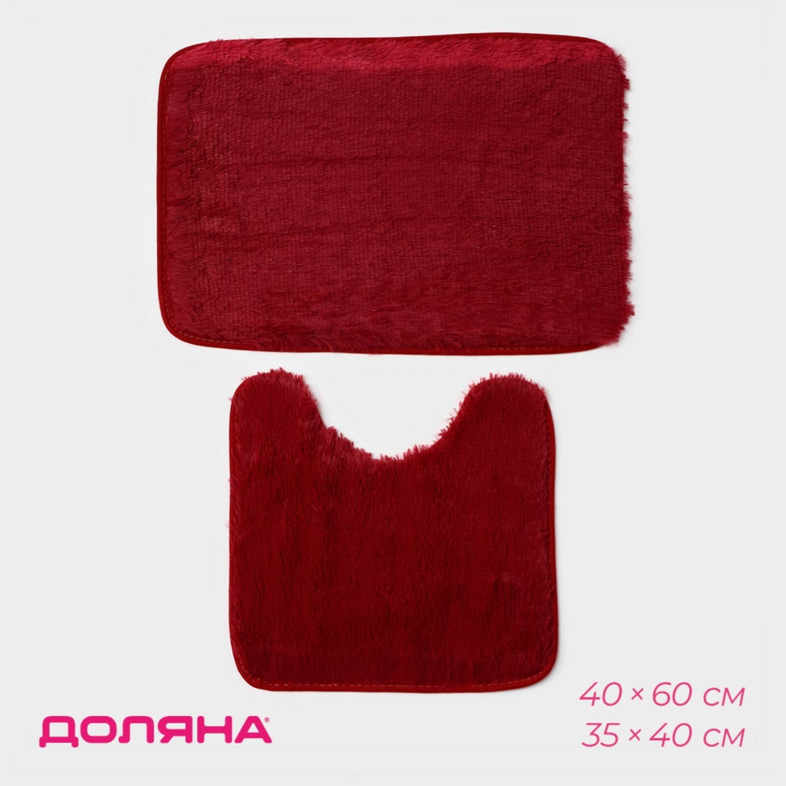 Набор ковриков для ванной и туалета Доляна Пушистик, 2 шт, 38 40, 40 60 см, цвет бордовый
