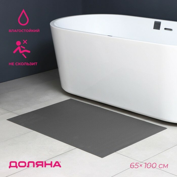 Коврик для ванной противоскользящий, мягкий Доляна, серый, 65х100 см