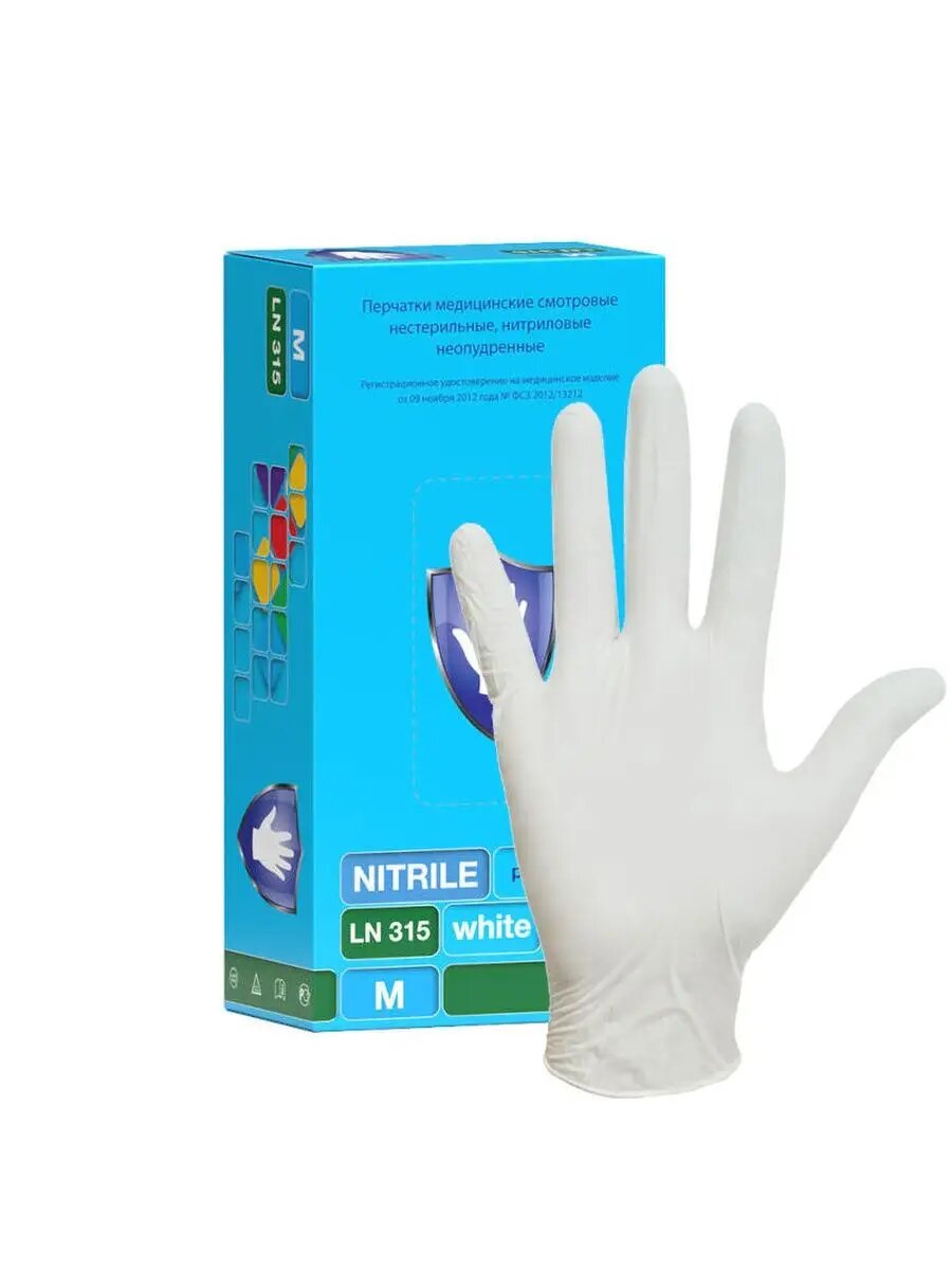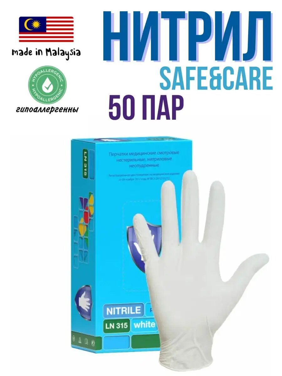 Перчатки смотровые нитриловые Safe&Care LN315 белые (50 пар, S)