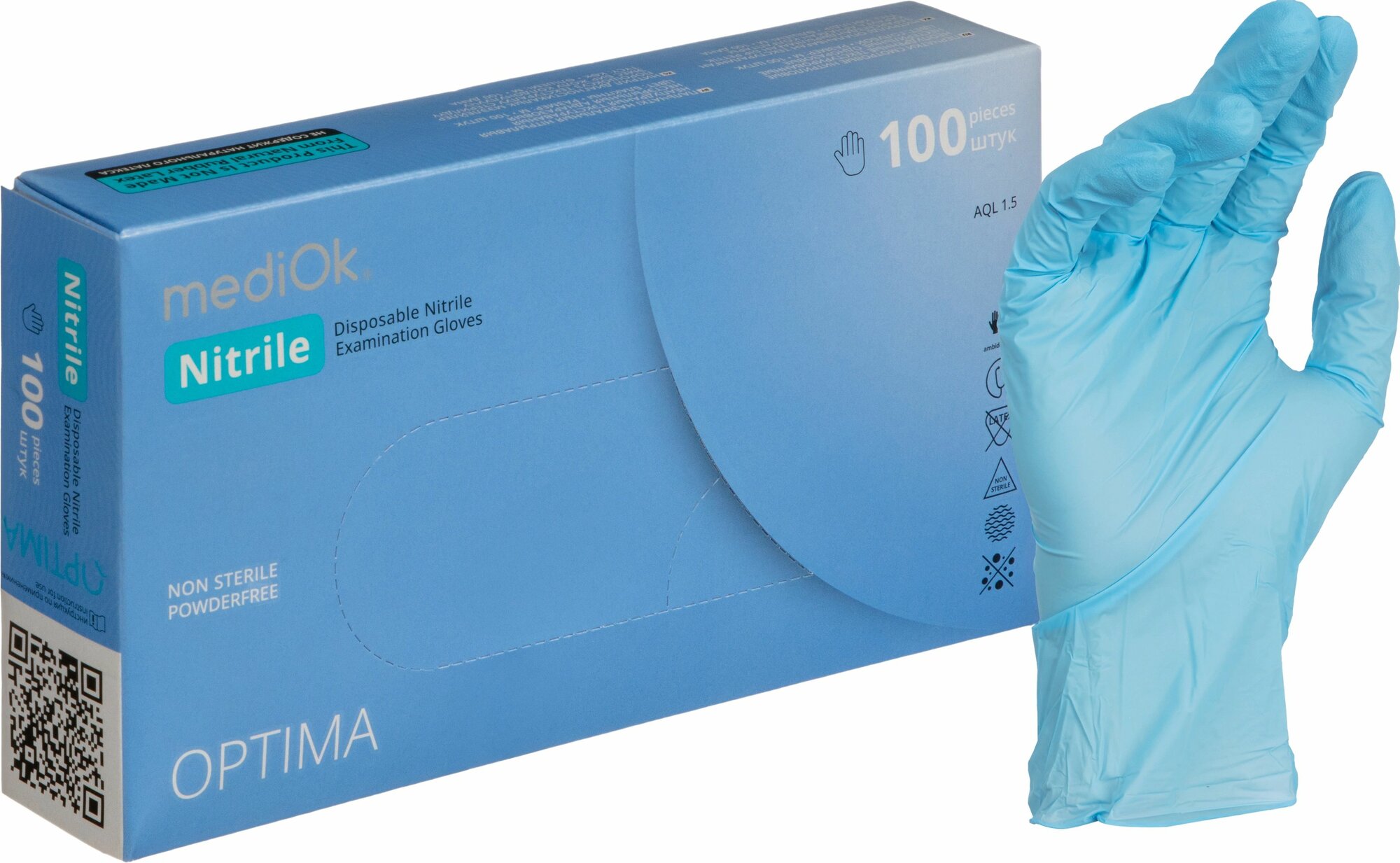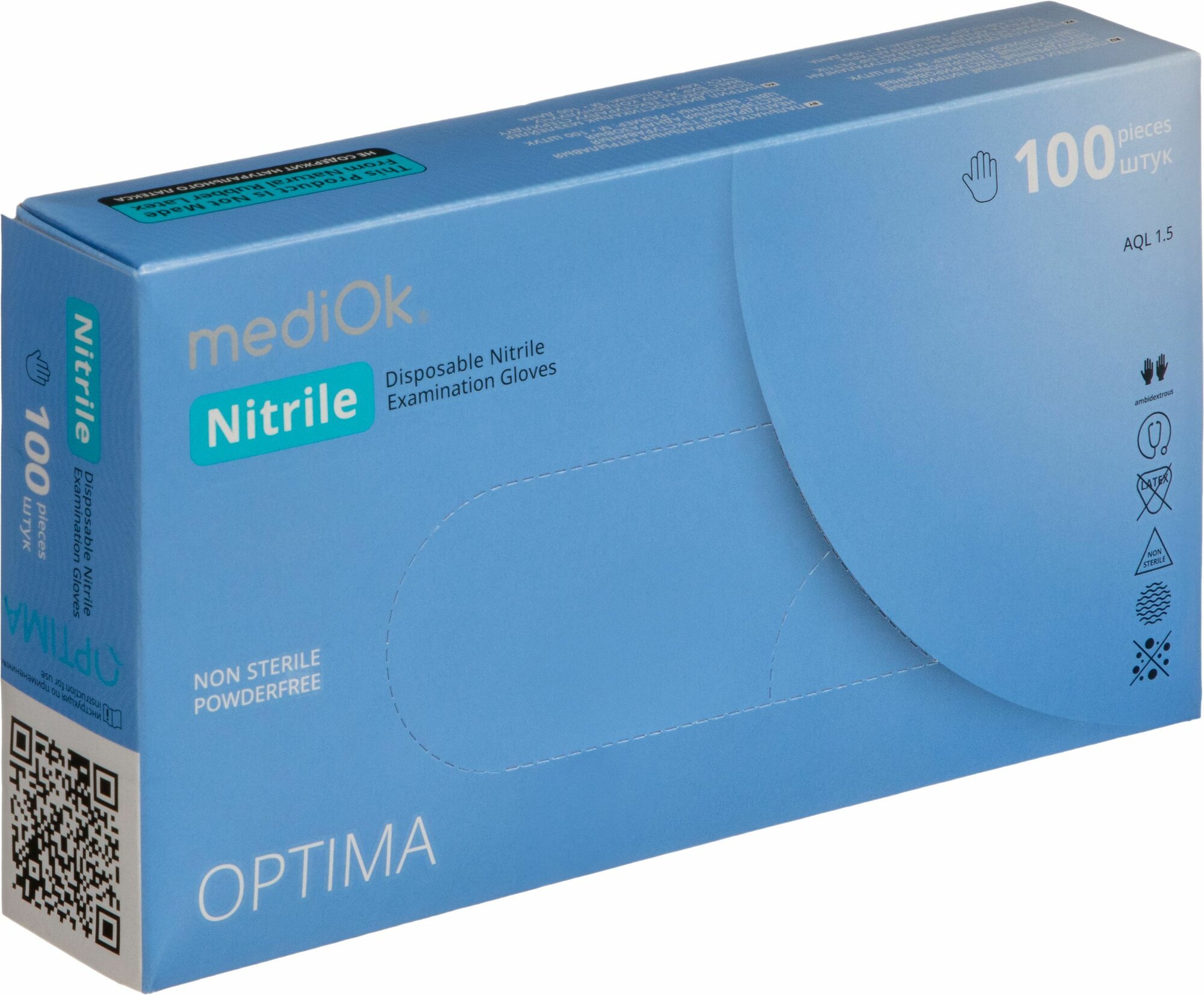 СохранитьПерчатки медицинские смотровые нитриловые MediOk Nitrile Optima нестерильные неопудренные размер M (7-8) голубые (50 пар/100 штук в упаковке) интересное: