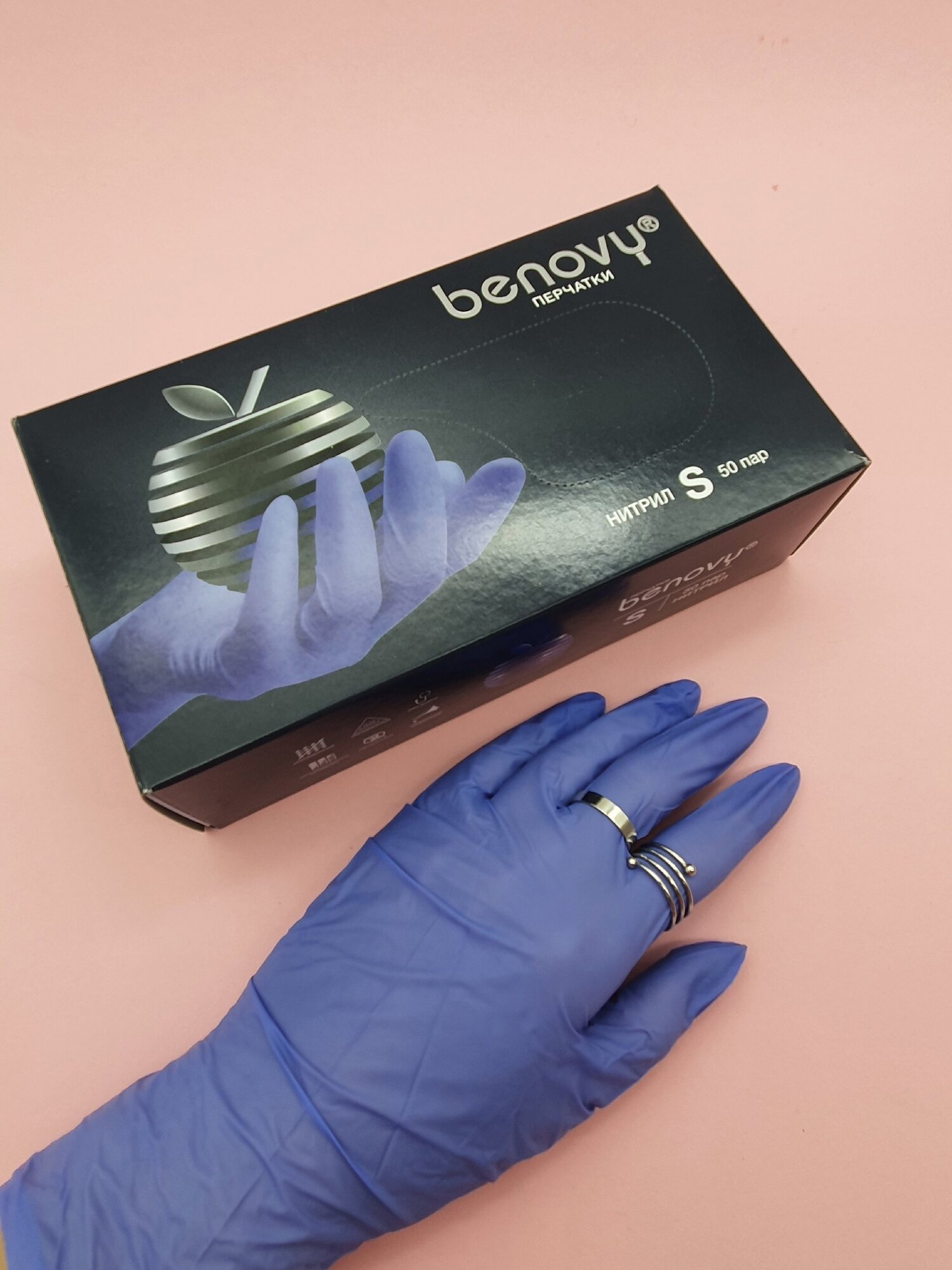 Перчатки одноразовые Benovy, нитриловые, размер L, сиреневые, 50 пар