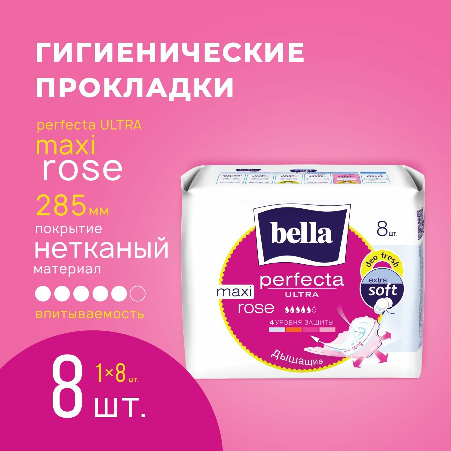 BELLA Прокладки женские гигиенические супертонкие "Perfecta Ultra" Maxi Rose Deo Fresh, 8 шт./уп.