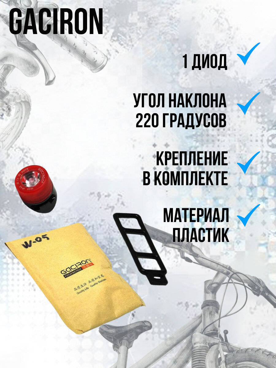 Купить GACIRON Фонарь задний W05 5lm,1диод,2 батареи CR2032,угол 220 град.черный,22гр H000015917